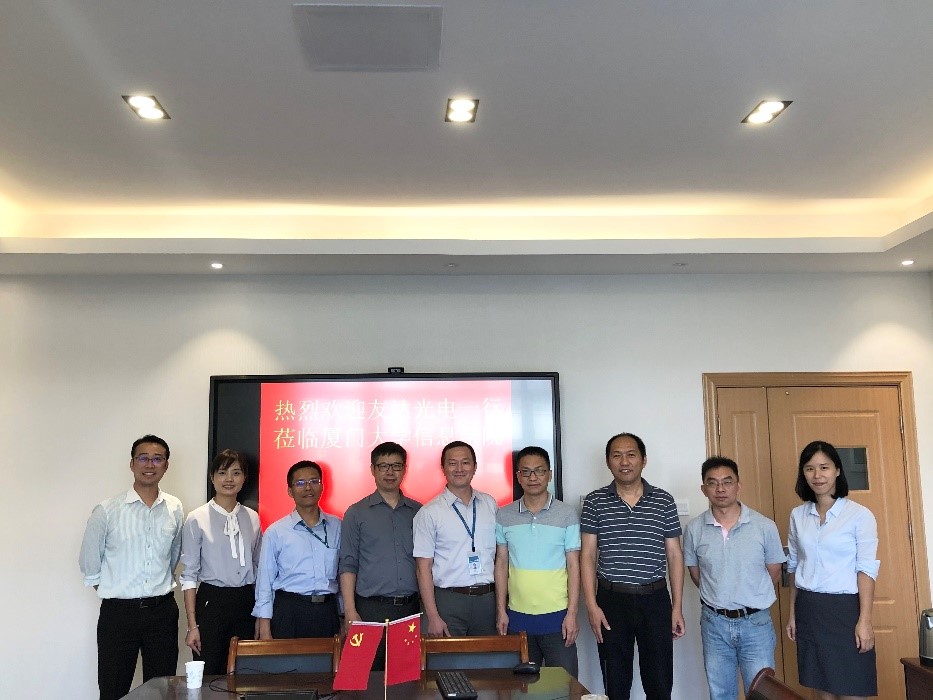 10月25日下午,友达光电(厦门)有限公司陈慧昌厂长、胡永平经理、李科宏经理、刘百欢经理、陈丹梅副理、庄小娥副理一行来访厦门大学信息学院并座谈。信息学院副院长姚俊峰教授、信息学院人工智能系主任史晓东教授、信息学院人工智能系副主任江敏教授参加了座谈会。