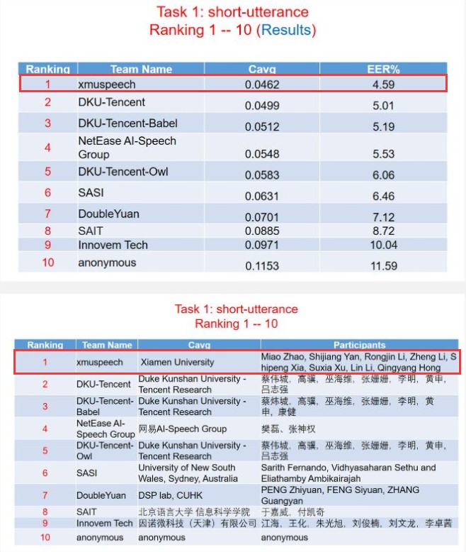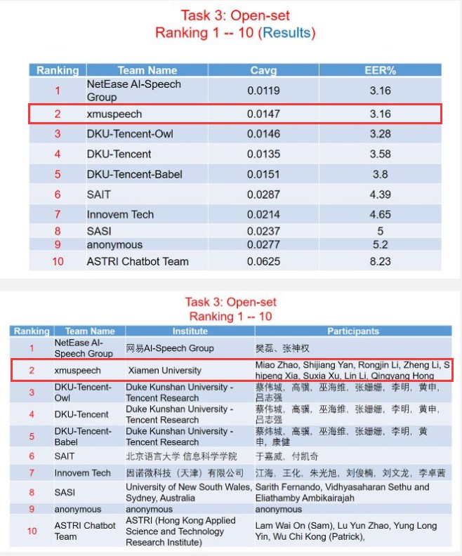 xmuspeech参赛团队由洪青阳副教授、李琳副教授、童峰教授指导,主要成员包括硕士研究生赵淼、李铮和颜世江等。