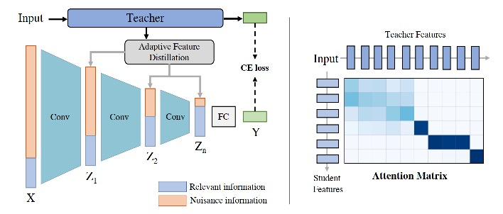 本文提出了信息瓶颈蒸馏(IBD)方法,用两种蒸馏策略来分别匹配信息瓶颈的两个优化过程。首先,利用鲁棒的软标签蒸馏来最大化潜在特征和输出预测之间的互信息;其次,提出了一种自适应特征蒸馏,可以自动将相关知识从教师模型转移到目标模型,从而可以限制输入特征和潜在特征之间的互信息。本文方法在各种基准数据集进行了广泛的实验,实验结果证明了所提出的方法可以显著提高模型的对抗鲁棒性。