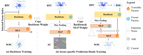 简介:现有基于隐式表征的定位方法通常需针对每个新场景进行长达数天的模型训练,难以满足自动驾驶等时间敏感应用需求。为此,本文提出LightLoc方法,旨在高效快速完成新场景定位。LightLoc采用冻结场景无关编码器、仅训练场景特定回归器的策略,并创新性地引入样本分类指导和冗余样本下采样技术,从而显著降低训练时间与数据冗余。实验表明,LightLoc仅需1小时即可达到最优性能,训练速度较现有方法提升50倍。