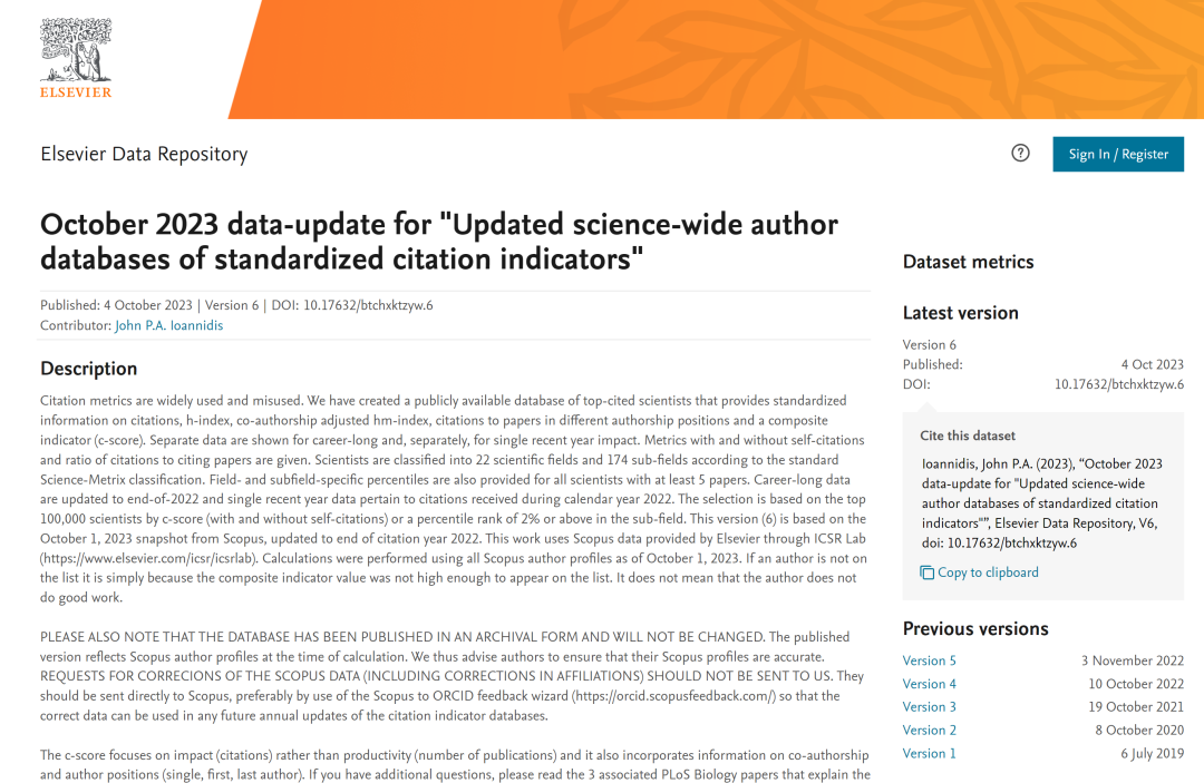 2023年10月4日,美国斯坦福大学John P. A. Ioannidis教授团队和爱思唯尔数据库(Elsevier Data Repository)发布2023全球前2%顶尖科学家榜单(Stanford University Top 2% Scientists List)。我系纪荣嵘教授,苏劲松教授,江敏教授和罗志明副教授入选。