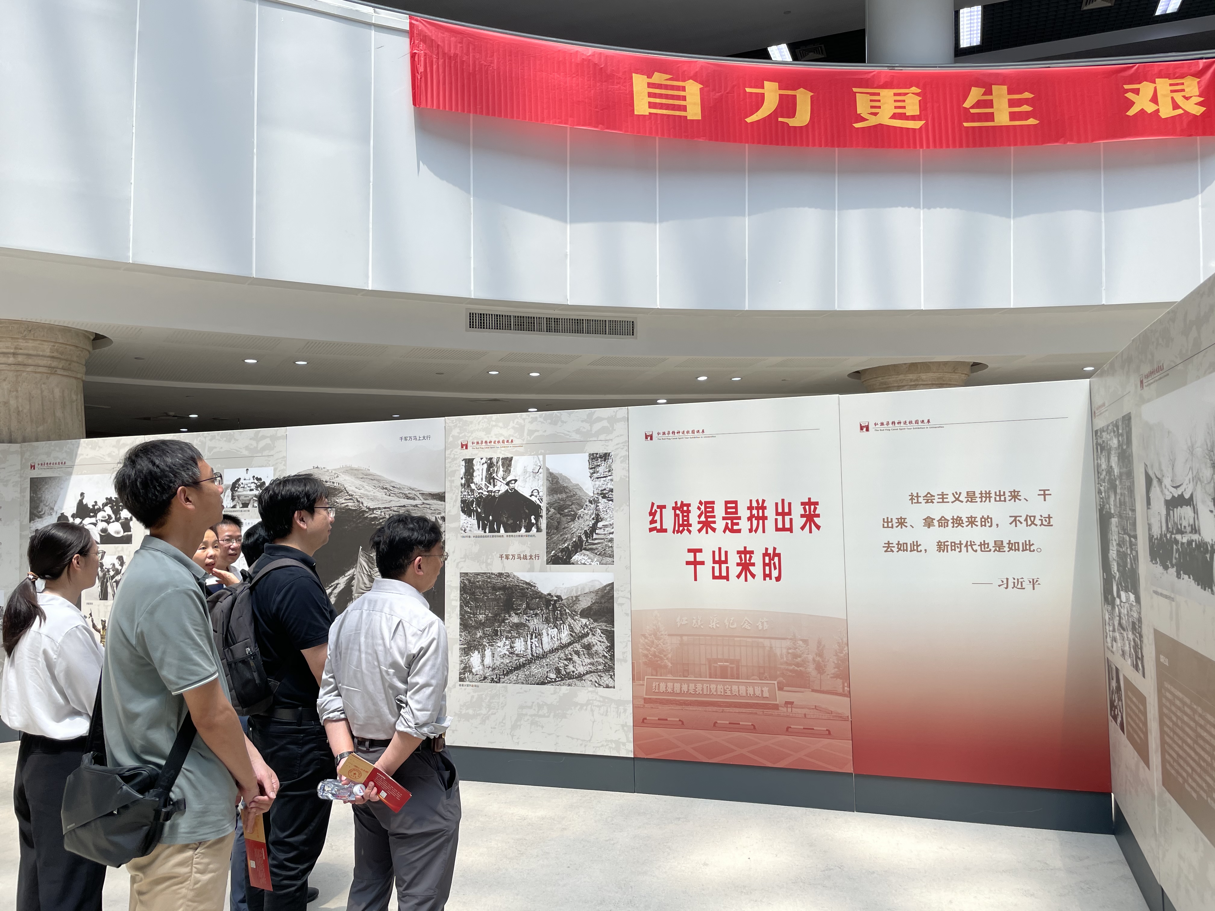 4月29日,人工智能系教工党支部组织党课学习活动,参观红旗渠精神进厦大校园巡展。学习活动在展出地点,翔安校区德旺图书馆中庭现场开展。