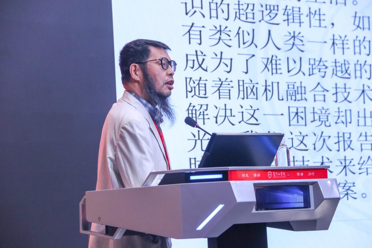 紧接着,福建省人工智能学会理事长周昌乐教授发表了热情洋溢的致辞。他指出,混合智能是实现通用人工智能的一条可能途径,应该引起省内人工智能学者更大的关注。在当今数字化转型的浪潮下,混合智能不仅为解决复杂的人工智能问题提供了新的思路和方法,也为促进学科交叉融合、推动创新发展带来了前所未有的机遇。他强调,本次学术年会聚焦混合智能,具有重要的现实意义和深远的战略意义,希望与会专家学者能够充分交流、深入探讨,共同推动混合智能技术的研究与应用,为福建省乃至全国的人工智能产业发展贡献智慧和力量。