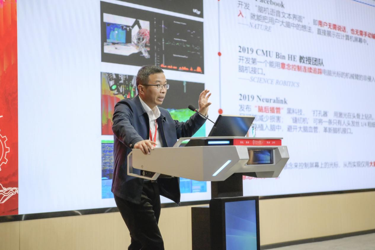 上午的会议安排了3个精彩纷呈的混合智能相关大会报告。国防科技大学的胡德文教授作了题为“脑信息模式识别与脑机交互”的报告,详细介绍了功能成像脑连接图谱的构造与验证,以及基于机器学习的脑重大疾病的客观诊断与干预和脑机交互的现状与实践。杭州电子科技大学的孔万增教授带来了“基于脑机协同智能的面部情绪识别研究”报告,阐述了如何结合人脑的认知能力与机器的计算表征能力形成脑机协同智能开展面部情绪识别研究。厦门大学周昌乐教授作了“机器意识的脑机融合途径”的报告,深入剖析了机器意识研究的困境与挑战,并提出了一种基于脑机融合技术实现机器意识的新途径。