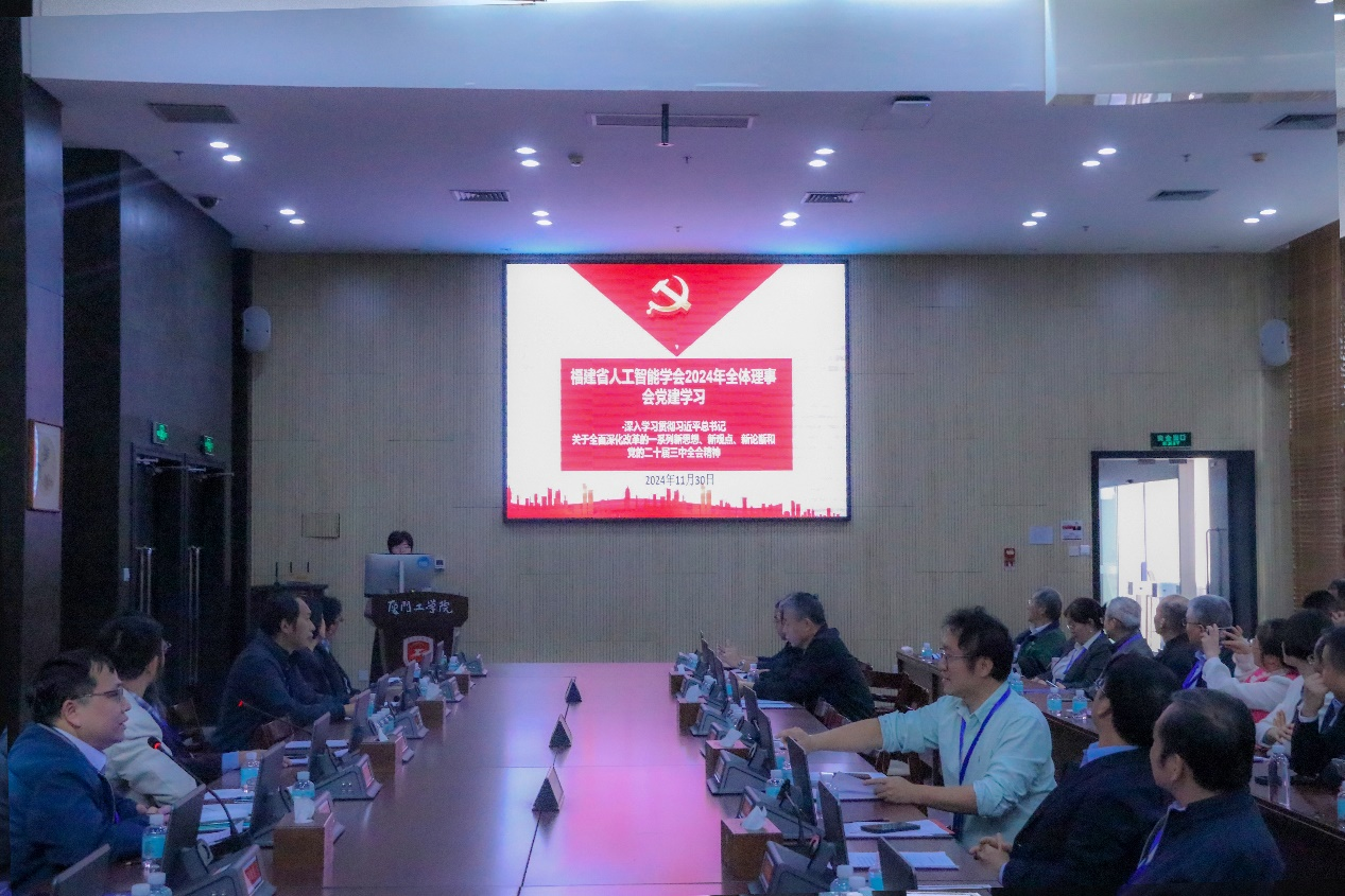 11月30日中午,福建省人工智能学会的理事会召开,与会理事听取了周昌乐理事长的2024年度工作报告和陈毅东常务副秘书长的2024年度财务报告,对新增理事申请进行了审核表决,讨论并决议了筹办成立科普工作委员会等事宜,开展了党建集中学习,并明确了2025年年会的承办单位为武夷学院。